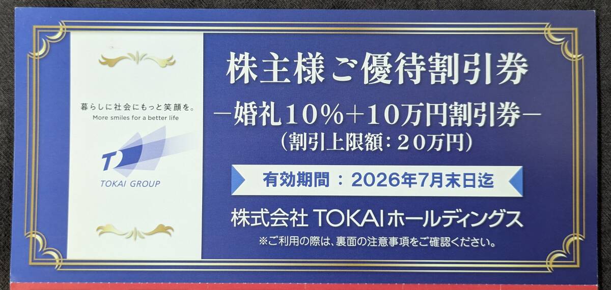- TOKAIホールディングス 株主優待 結婚式場 グランディエール ブケトーカイ 婚礼10%+10万円割引券(上限20万)1枚,レストラン2割引12枚付き