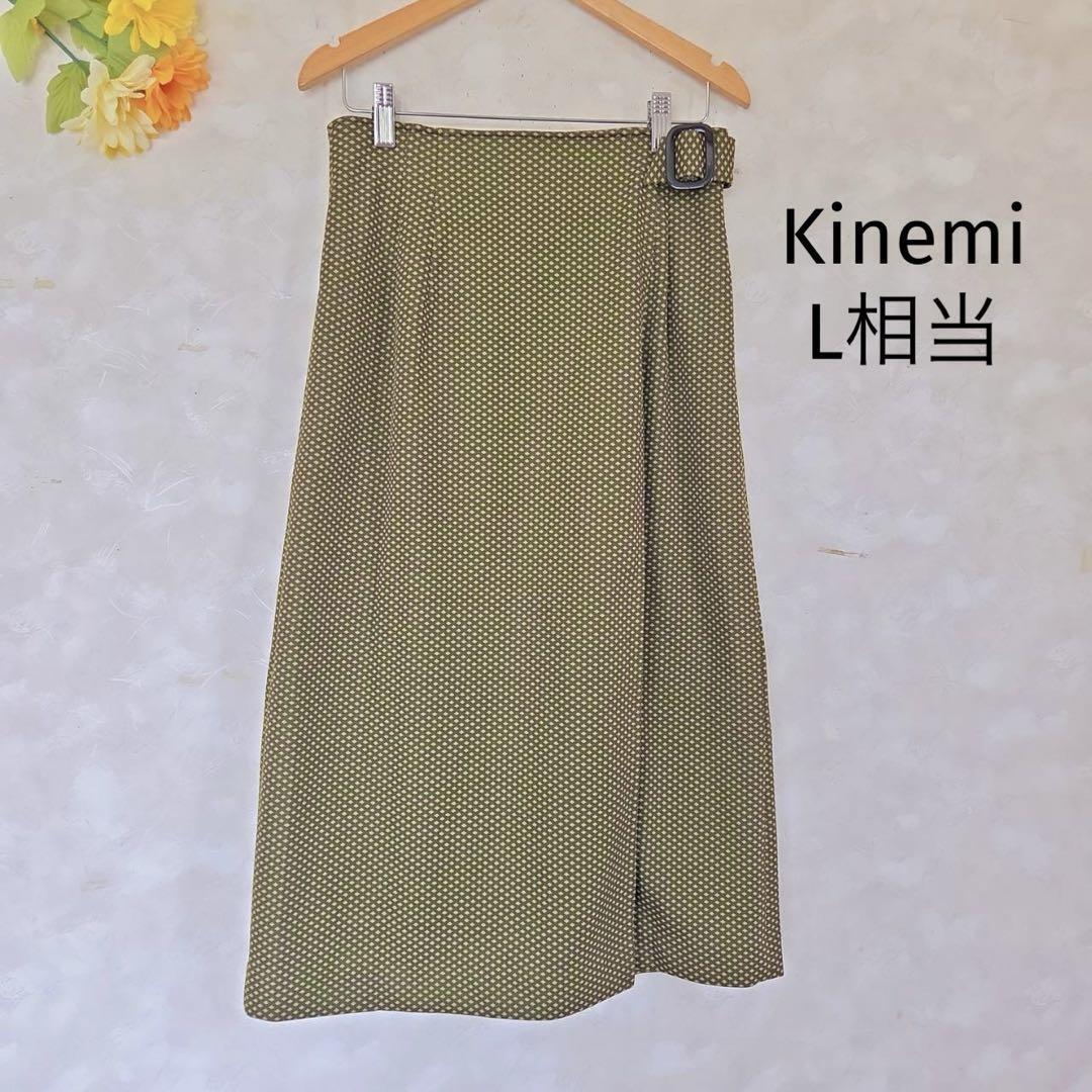 - 美品Kinemi 膝下丈スカー L相当 ラップスカー 総柄 レトロ