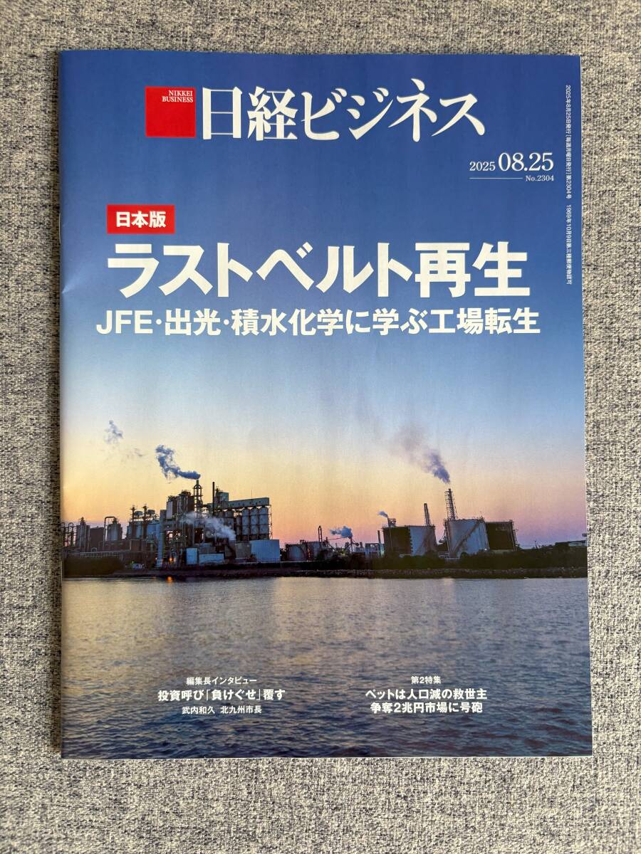 > ★日経ビジネス 日本版 ラストベルト再生 JFE 出光 積水化学に学ぶ工場転生 ペットは人口減の救世主 飼い主の愛情 争奪2兆円市場 2025.8.25