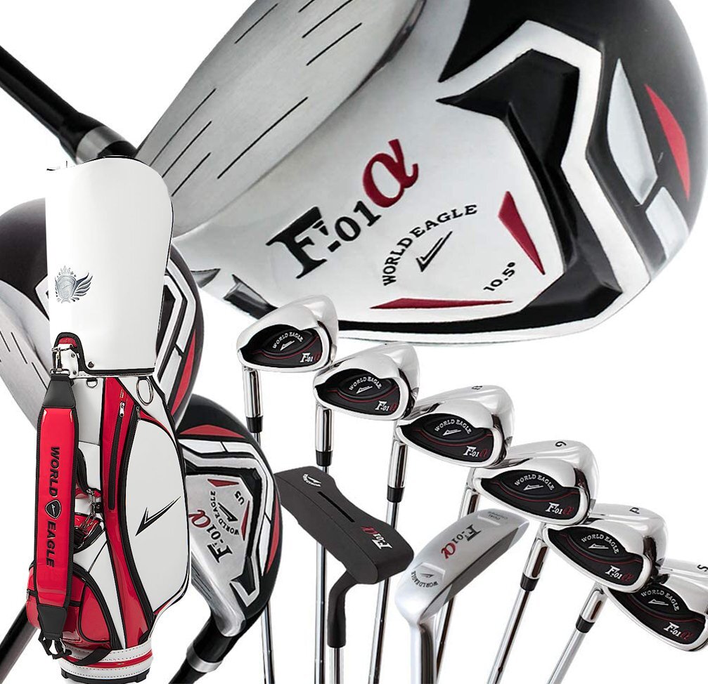- F-01α クロスモデル メンズゴルフクラブセット CBX003 レッドカラーカートバッグ付 左利き用 フレックスR[33774]