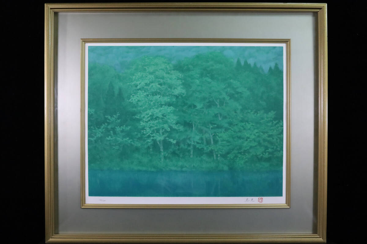 - ◇雅◇ 真作保証 濱田昇児 「山湖」 12号 日本画 直筆サイン 140/200 リトグラフ 額装 /RYO.25.8 [M78] P