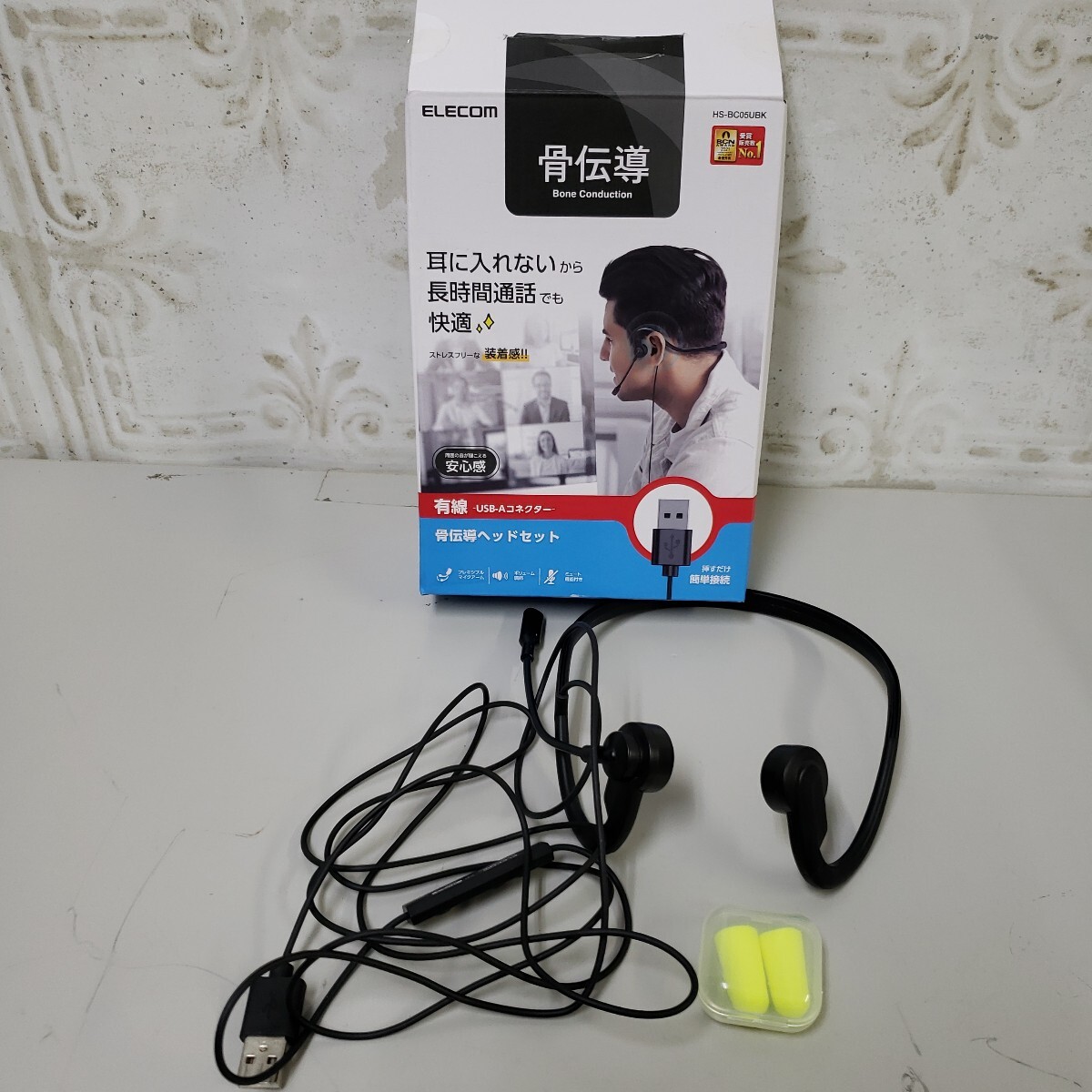 - 708y2507★エレコム 骨伝導イヤホン マイク付き 骨伝導ヘッドセット 有線 USB-A 軽量 ペアリング・充電不要 HS-BC05UBK