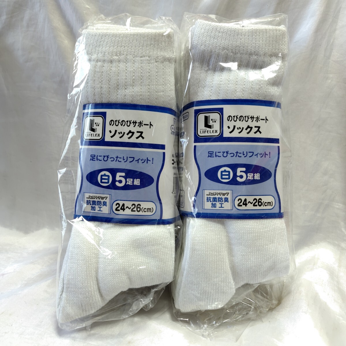 - 【未使用・未開封】コーナン のびのびサポートソックス 靴下 ソックス 白 5足組×2袋 24〜26cm 抗菌防臭加工【雑貨0817】