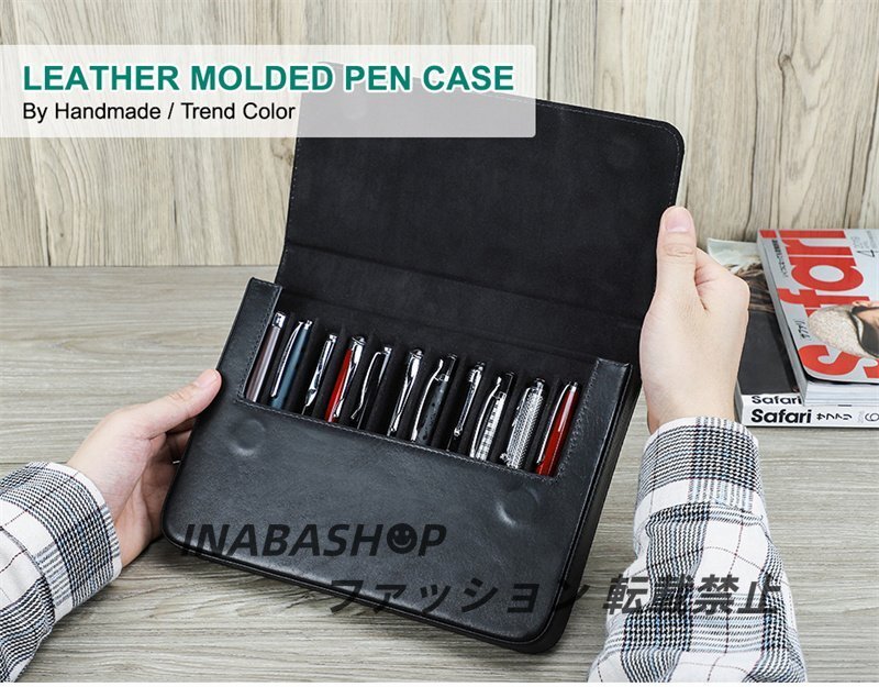 - ペンケース 本革 ペン本 12本差し シンプル 軽い 小さめ スリム 筆箱 ふで箱 本革万年筆 革小物 文具 文房具 収納 牛革 贈り物 父の日