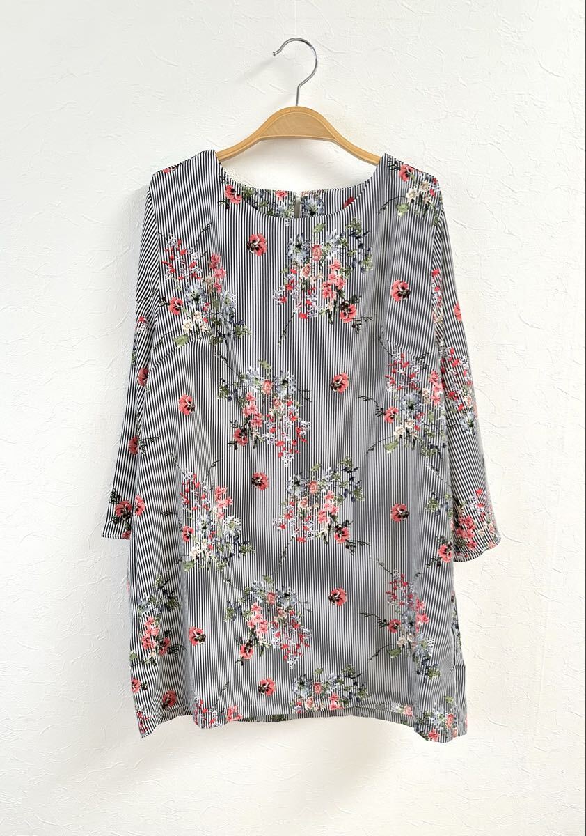 - タグ付き 新品 ストライプ×フラワープリント チュニック