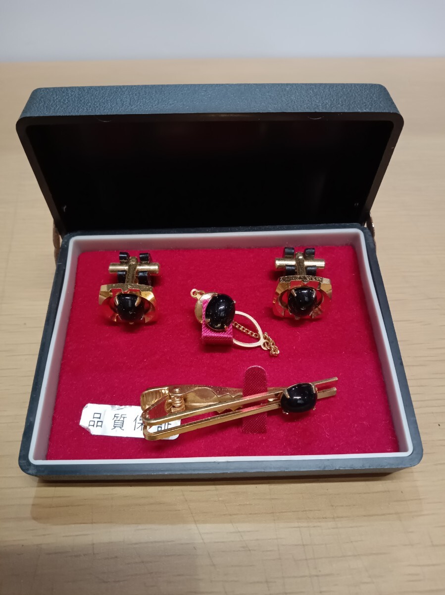 - メンズ ブラックストーン タイピン カフス セット アクセサリー 紳士用 保管品