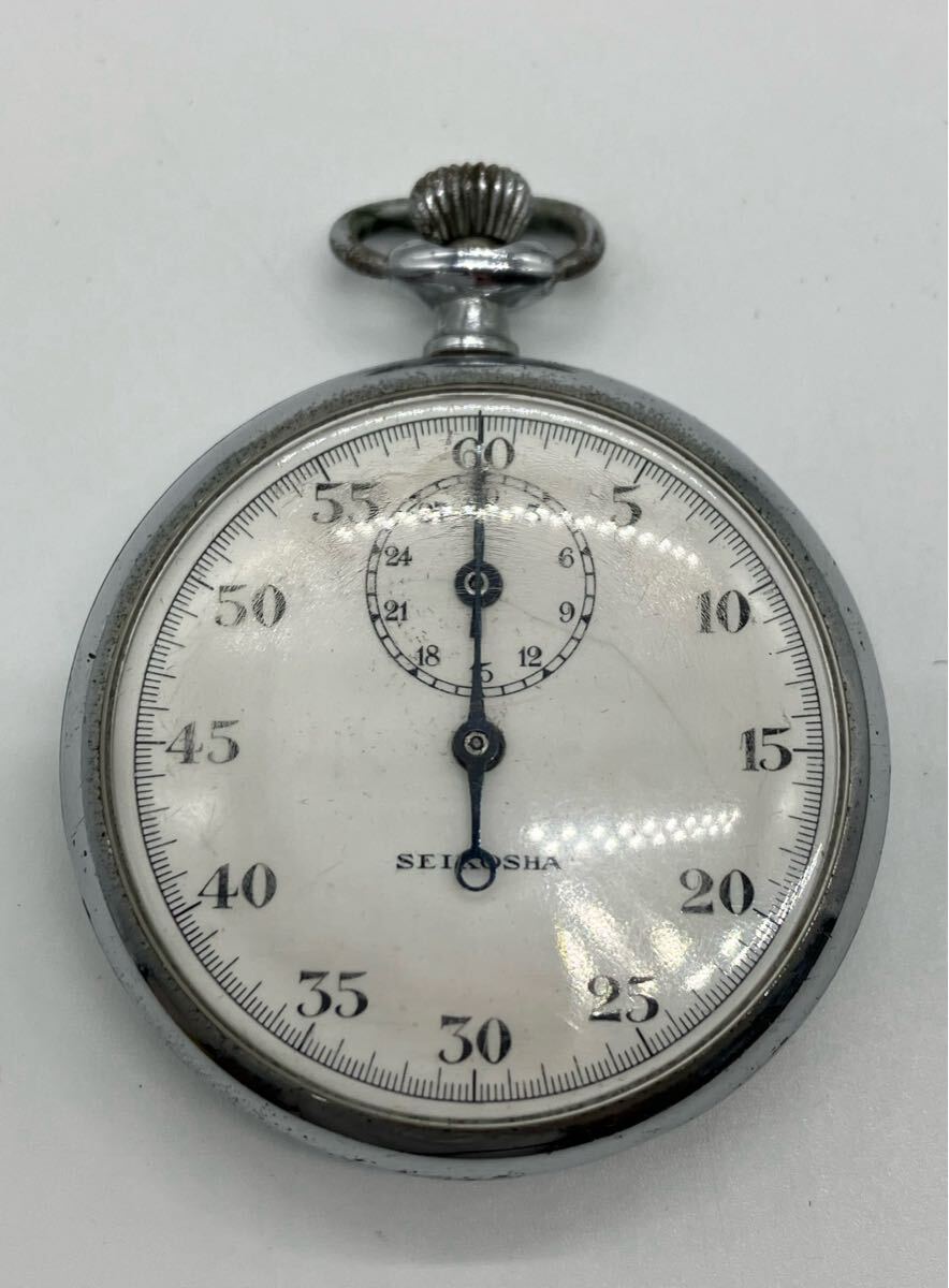 - SEIKOSHA 精工舎 懐中時計 手巻き ストップウォッチ シルバー SS 白文字盤 ヴィンテージ アンティーク 稼働【916】