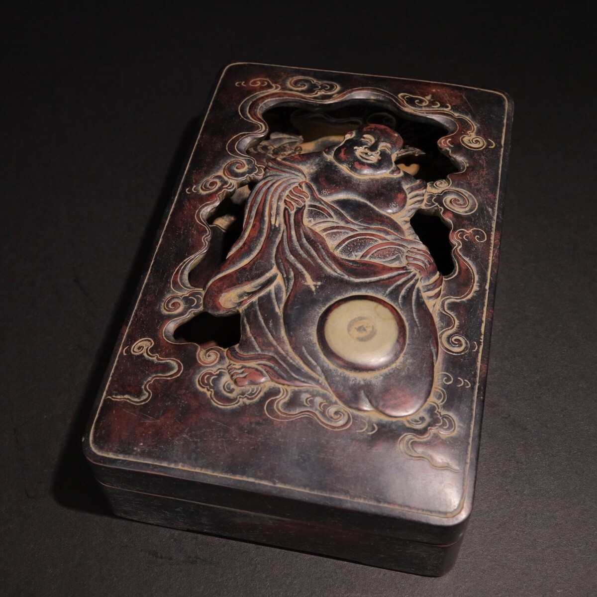- 「古端石硯 笑仏呈祥文房端渓蓋硯 呉鐘駿銘 清時代」手彫り 文房四宝 書道具 中国古美術 旧蔵出