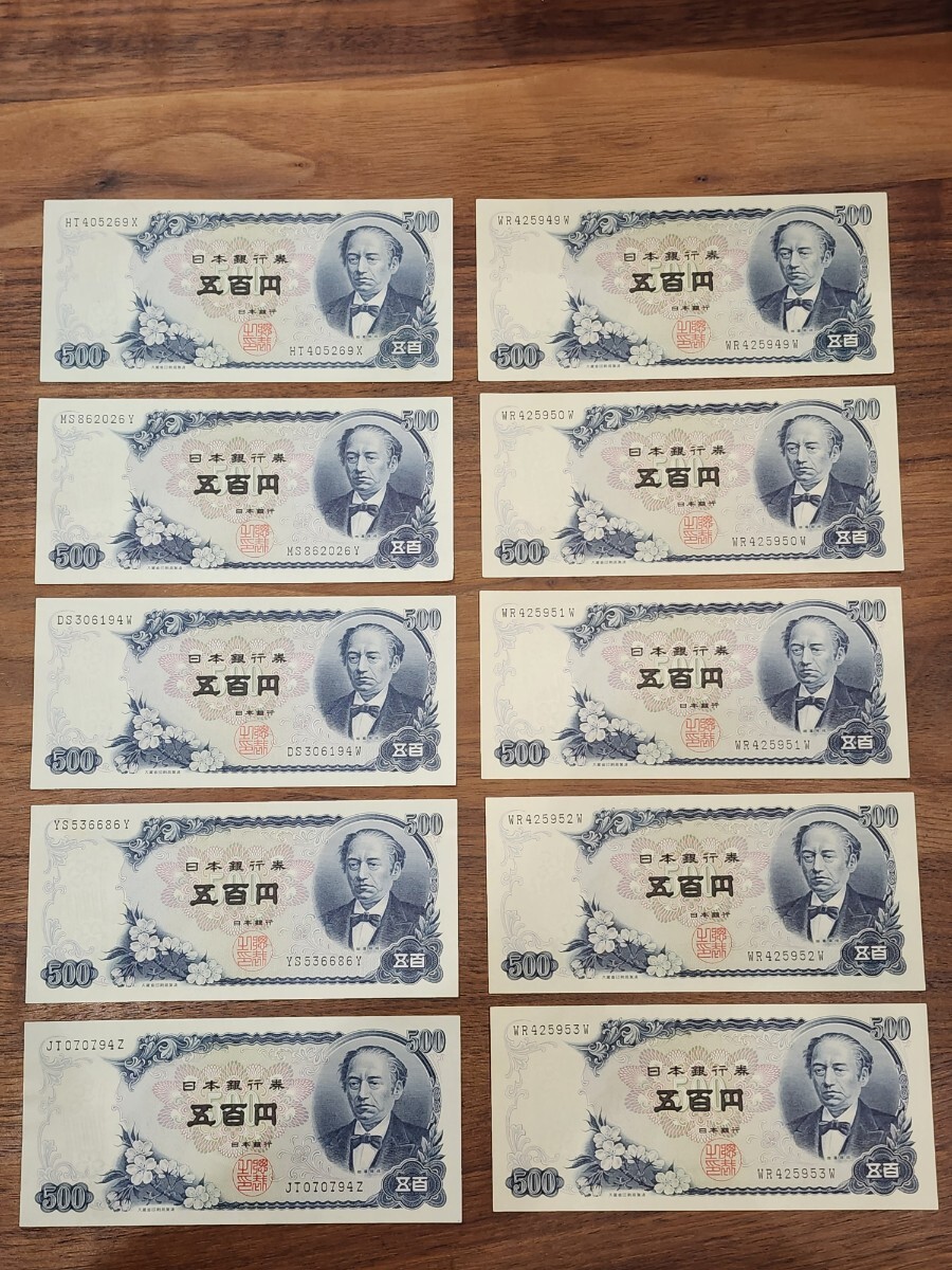 - 岩倉具視 五百円札 10枚セット 額面5000円分 5連番 コレクション 日本銀行券 旧札 旧紙幣 500円札 ピン札 古銭