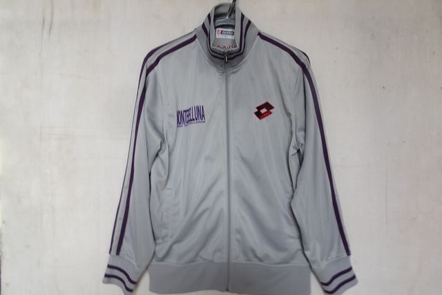 > Lotto/ロット/長袖トラックジャケット/ジャージ素材/前ジップアップ/紫ラインテープ/紫ライン入リブ/スポーツ/グレー/Mサイズ(8/26R7)