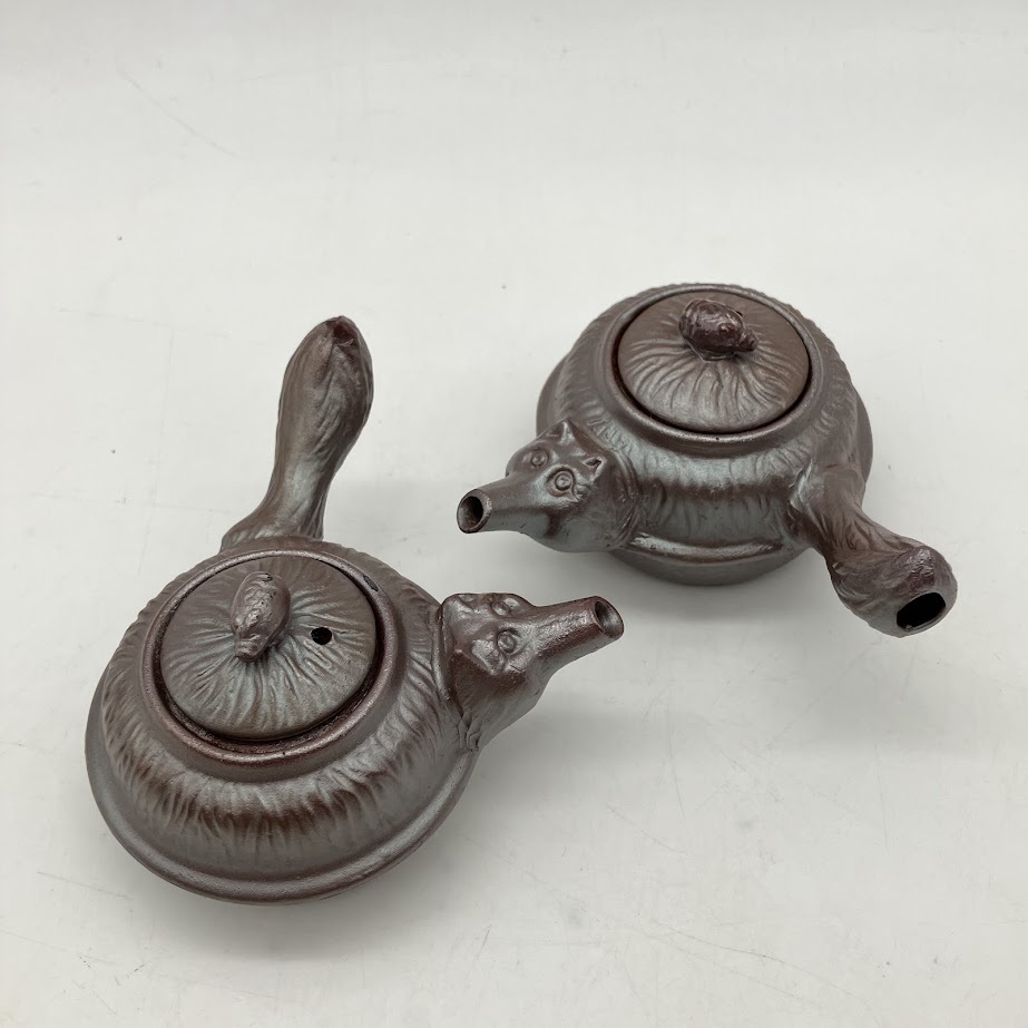 - ★sz3080 急須 きつね? たぬき? 2点セット ミニ急須 狐 狸 キツネ 茶器 水差し オブジェ インテリア 送料無料★