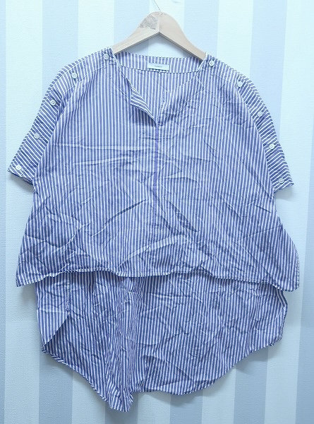 - 2-2121B/FEMMENT ノーカラーストライプシャツ LS01-629 ファモン 送料200円