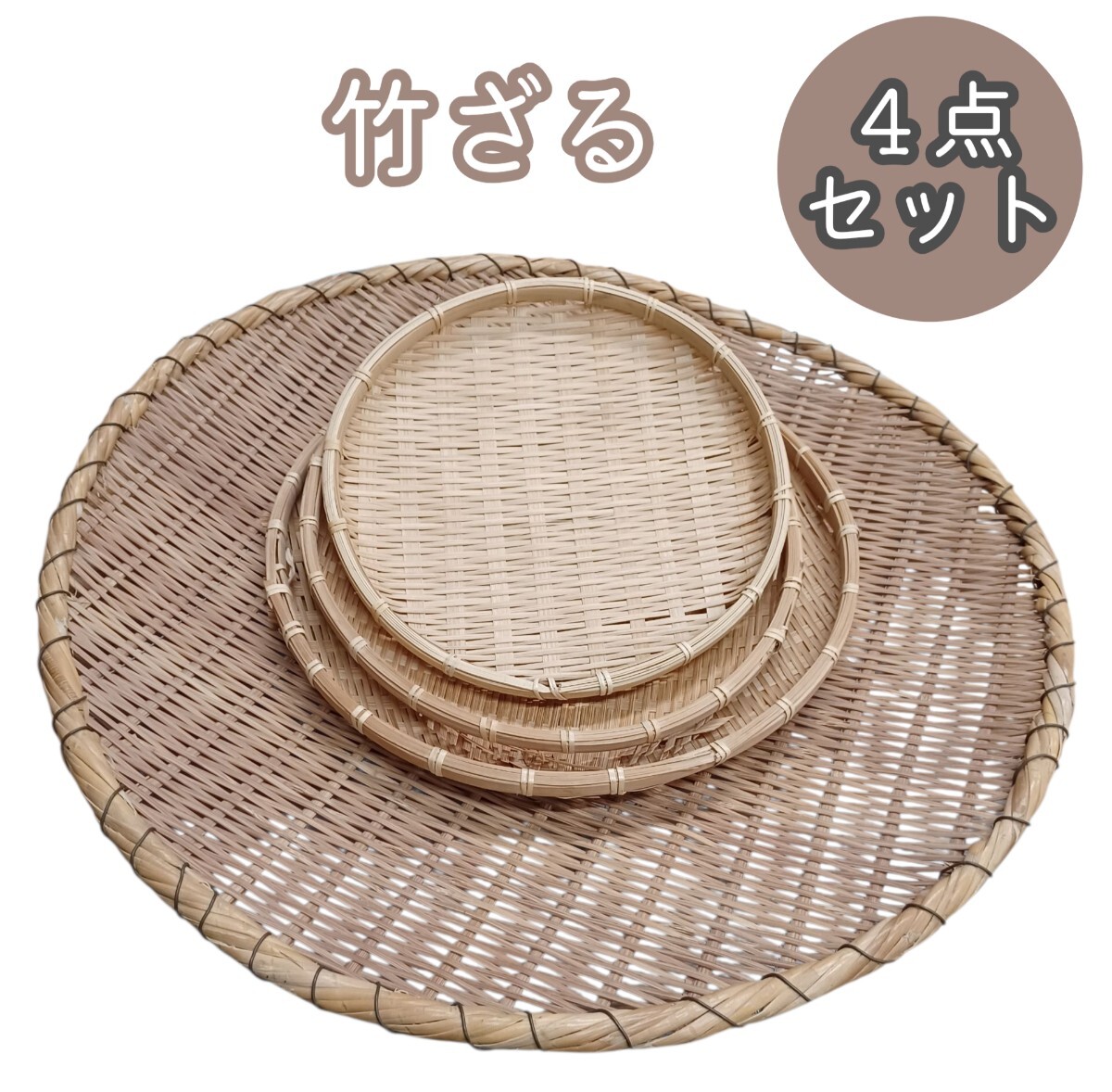 - 岩【4点セット】竹ザル 網ザル 編みザル ざる 浅ざる ザル 大ザル 中ザル 小ザル 雑貨 丸ざる 竹ざる 丸 竹細工 250826(J-2-1棚上