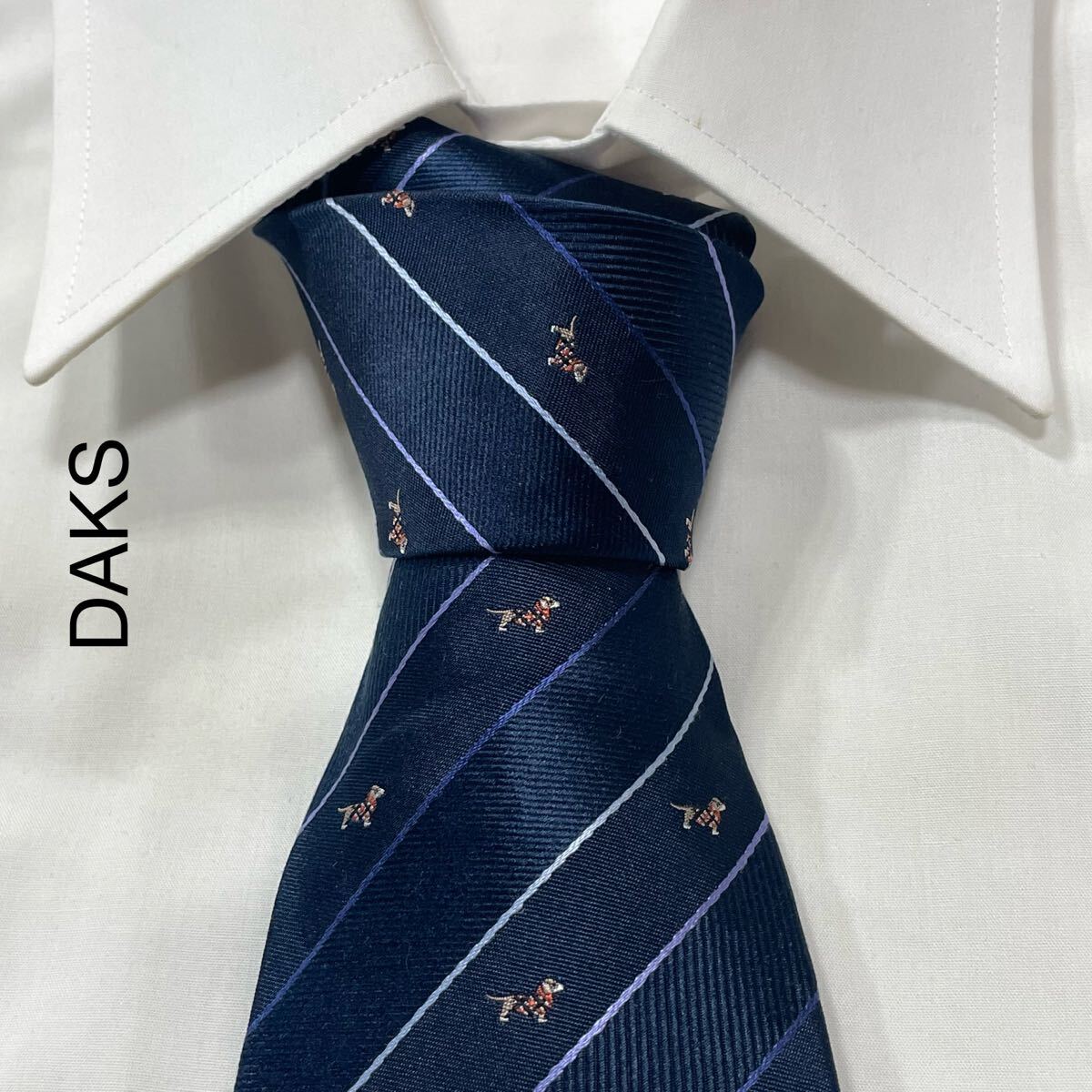 - DAKS ダックス アニマル レジメンタル ストライプ ジャガード シルク ネクタイ 日本製 ネイビー TG2810