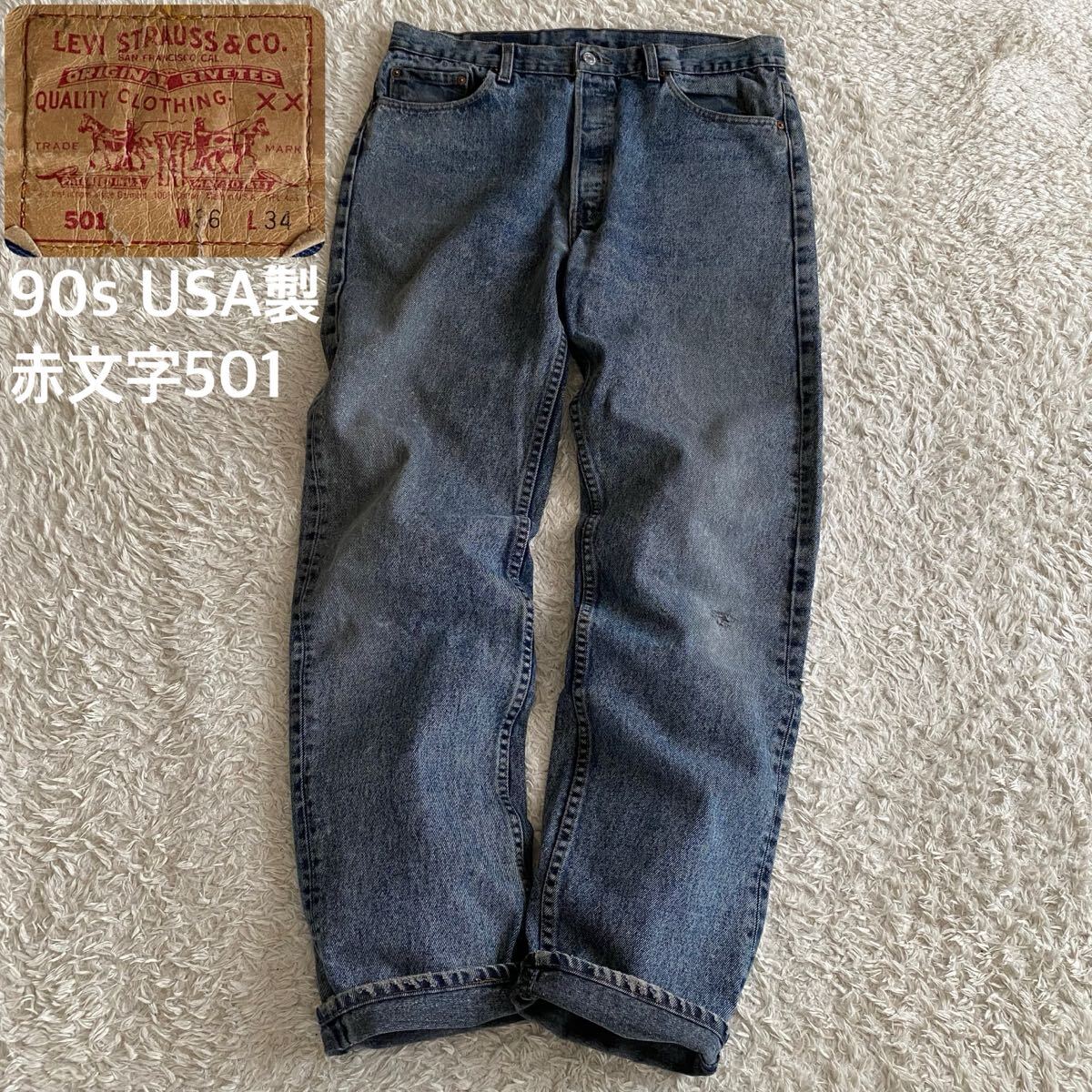 > 90s/W36 Levi's リーバイス 赤文字 501-0165 後染めブラック USA製 アメリカ ヴィンテージ ビンテージ ジーンズ デニム ジーパン Gパン
