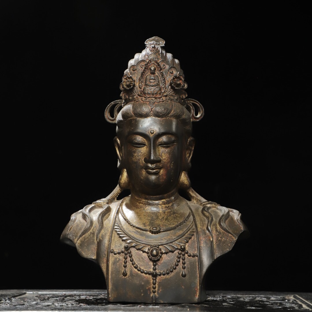 - 『館蔵珍品 銅製 泥金 觀音仏首 仏像 宗教 仏教古美術 供養品』稀少珍蔵品 古賞物 貴重物品 収蔵品 中国古美術 時代物 古董品