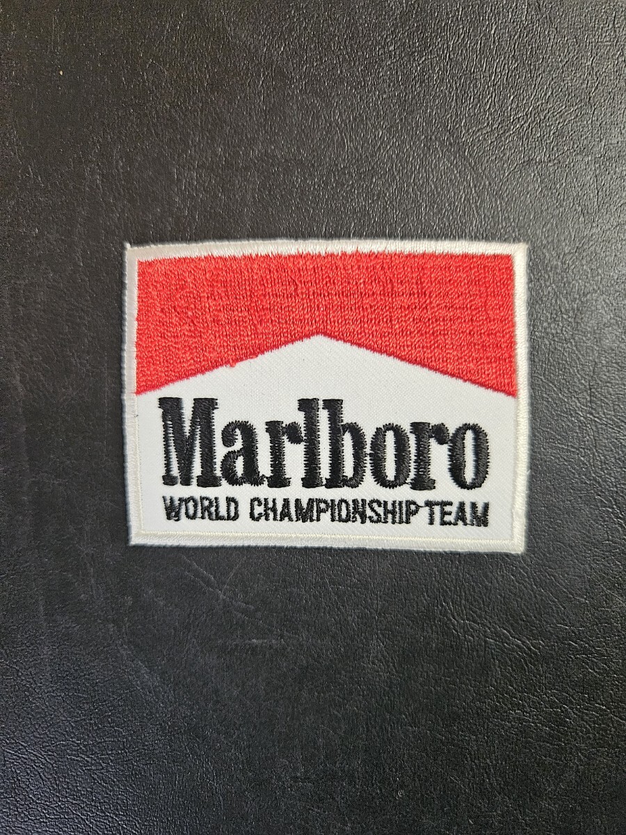 - Marlboro マルボロ タバコ ワッペン/自動車 整備 レーシング F1 スポンサー アイロンワッペン 刺繍 当時物 昭和レトロ ビンテージ
