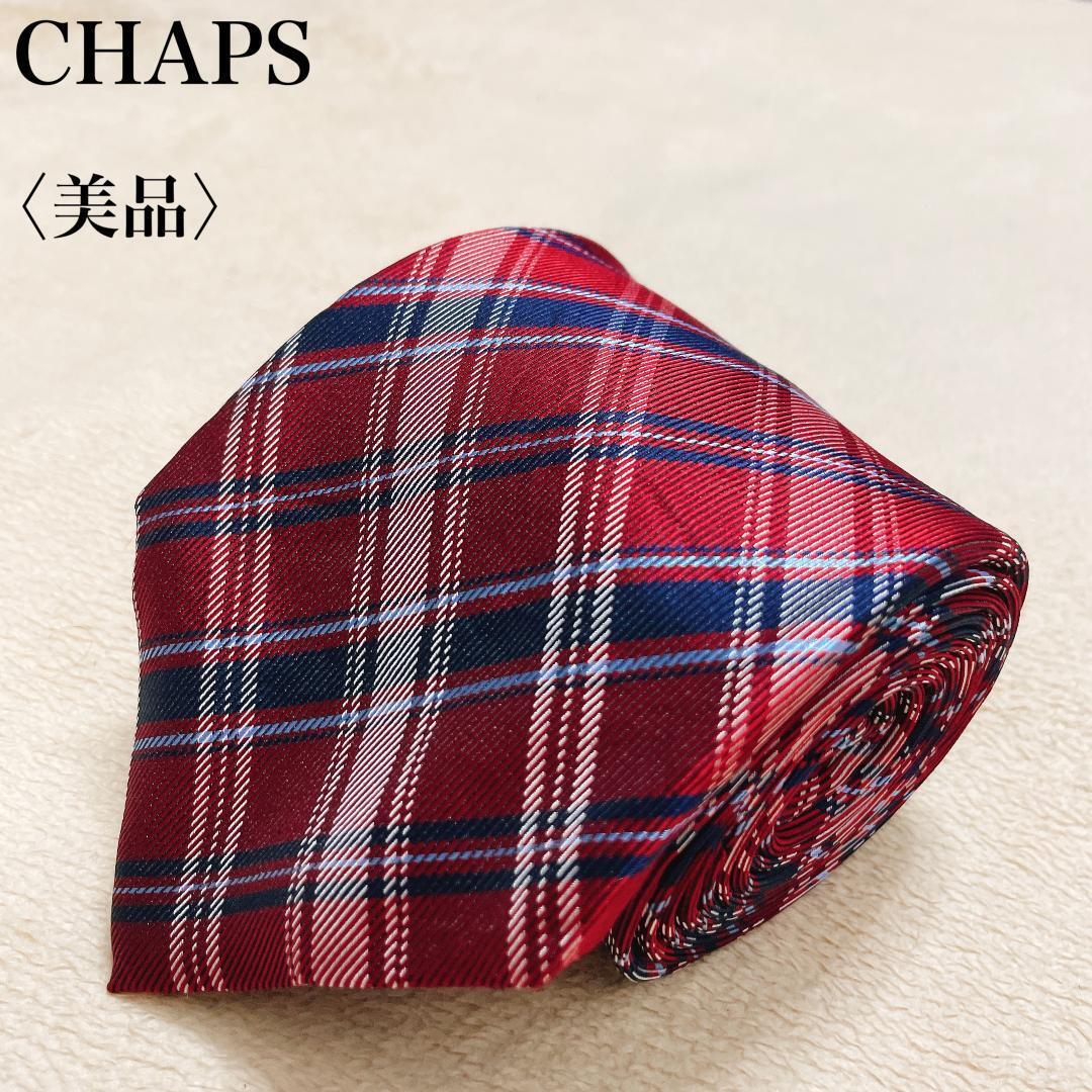 - 【美品】CHAPS チャップス ネクタイ シルク100% チェック トラッドスタイル レッド 高級感 光沢 エレガント ビジネス スーツ 上品 3-39
