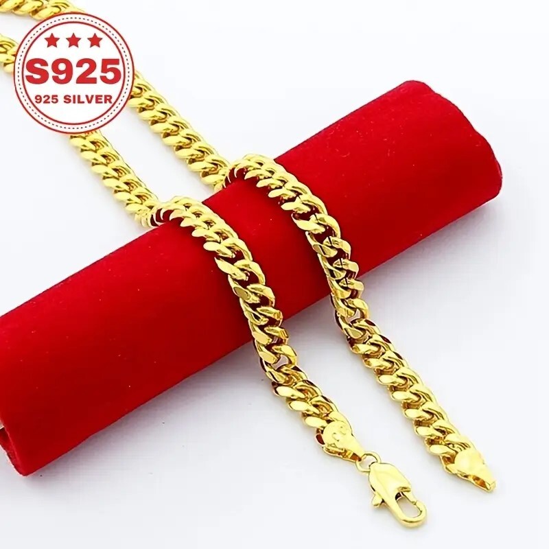 - 24Kゴールドプレート キューバンネックレス、クラシックファッションネックレス、925スターリングシルバー製 定価:198000円