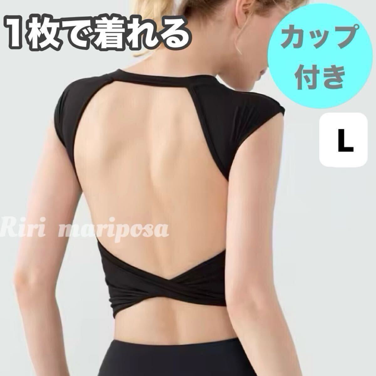 - 印象的な背中*バックツイスト*カップ付きショートトップスLサイズ黒 ヨガタンク ヨガウェア