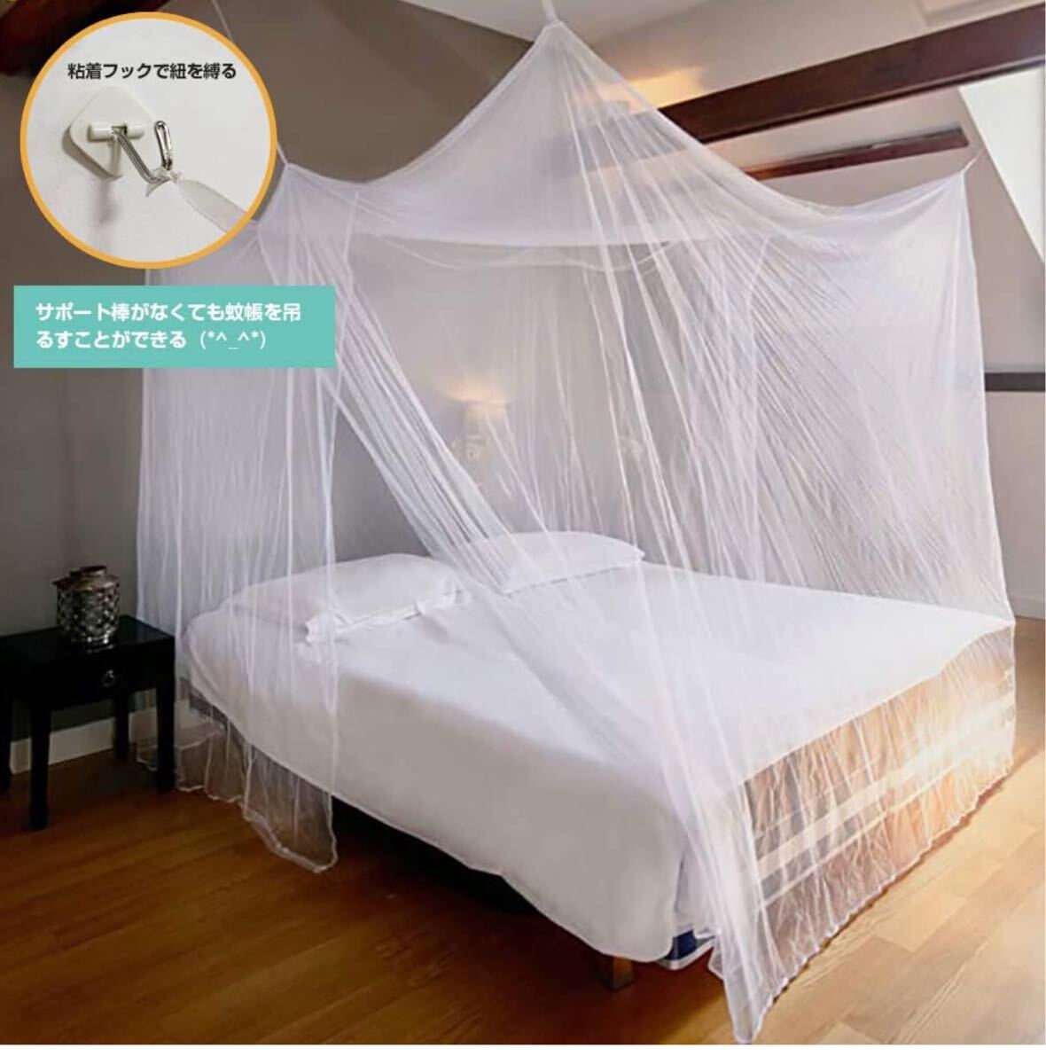 - 新品蚊帳 かや 大型 6畳 8畳用 モスキート ネット 四角 ベッド用 ムカデ 虫除け 対策 吊り下げ シンプル 長さ350×高さ220×幅220CM 防虫