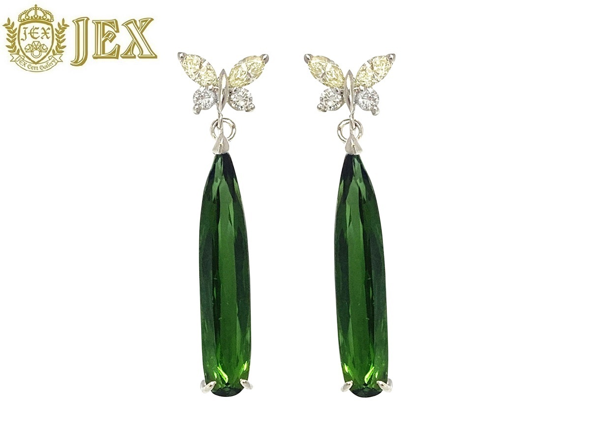 > Green Tourmaline Pt900グリーントルマリン イエローダイヤモンドイヤリング NO.128816