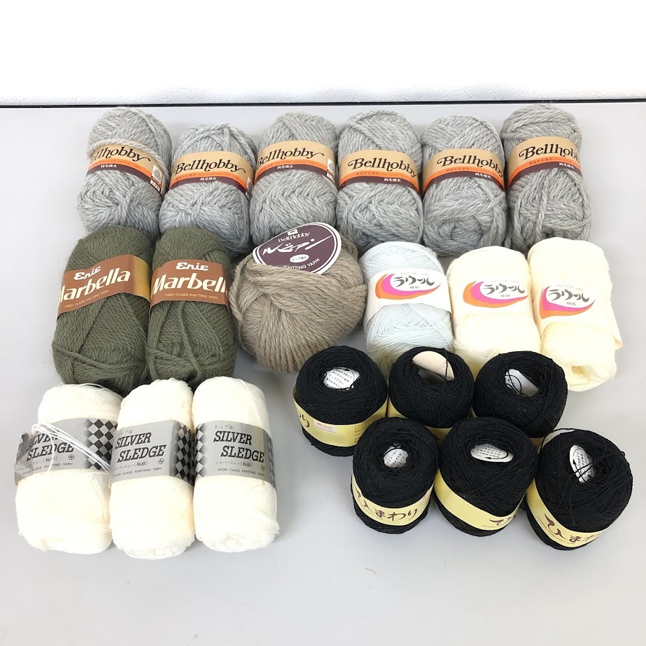 > ★ss7837 毛糸 21玉 色々毛糸まとめ売り グレー カーキ ホワイト ブラック 太め 極細 保管品 編みもの ハンドメイド★