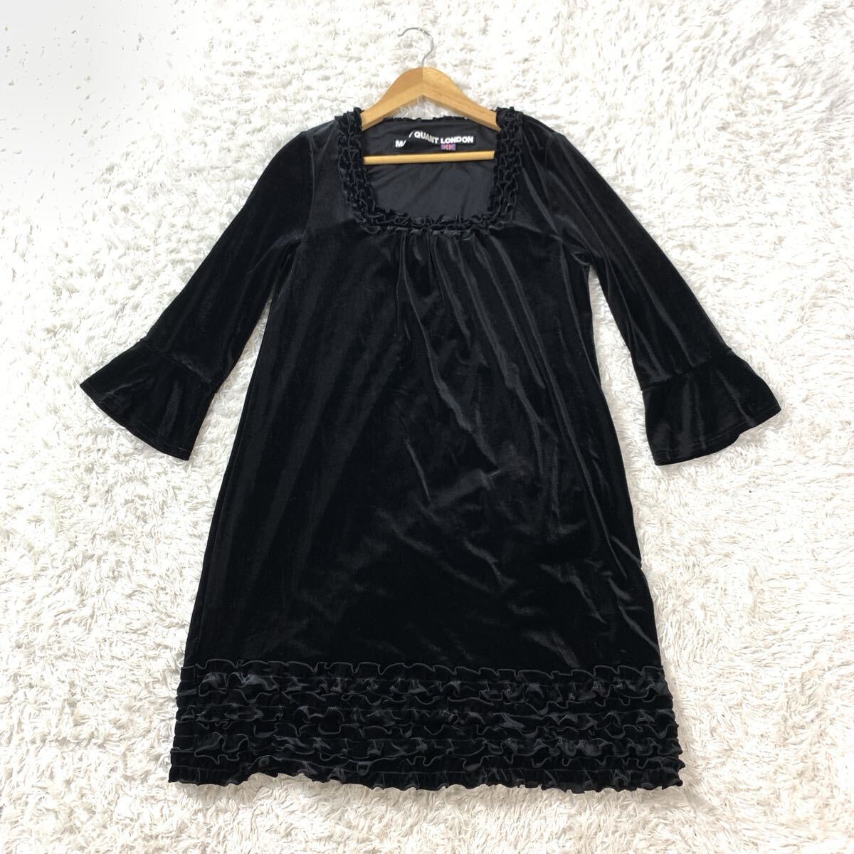 - MARY QUANT LONDON マリークワントロンドン フリルワンピース 七分袖ワンピース ブラック ポリエステル ポリウレタン 38 YA54
