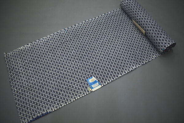 - A42-3【凛々】即決 新古品 本染 ゆかた反物 白 紺 斜め格子 未仕立て品