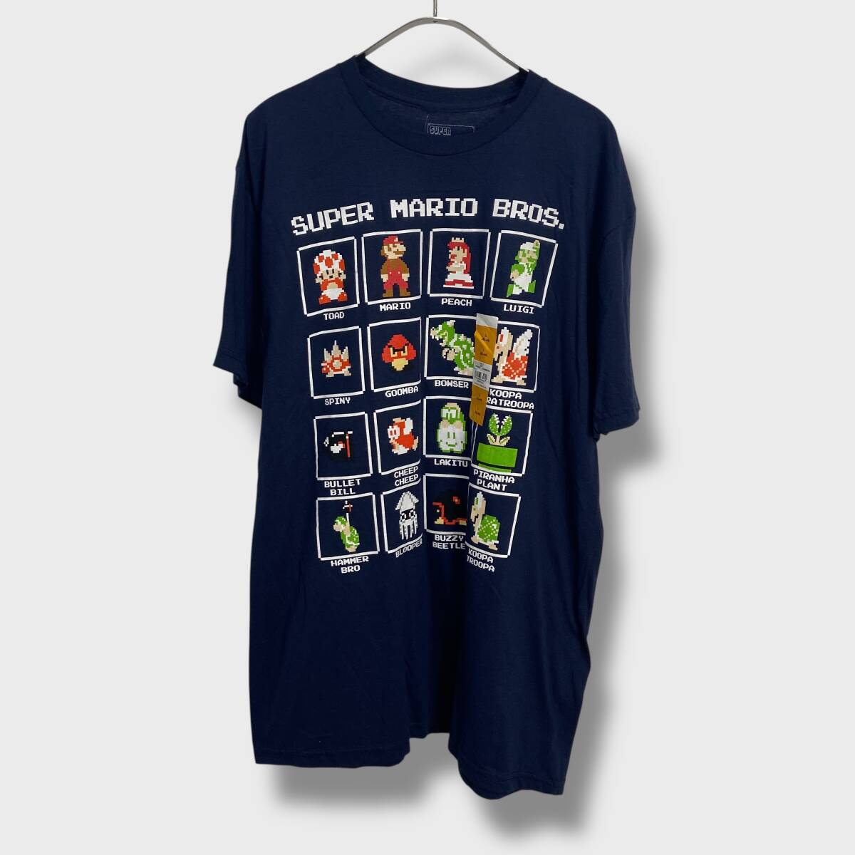 - 送料無料☆タグ付き未使用品☆任天堂☆ニンテンドー☆スーパーマリオ☆キャラクターTシャツ☆プリントTシャツ☆ネイビー☆L☆H25M