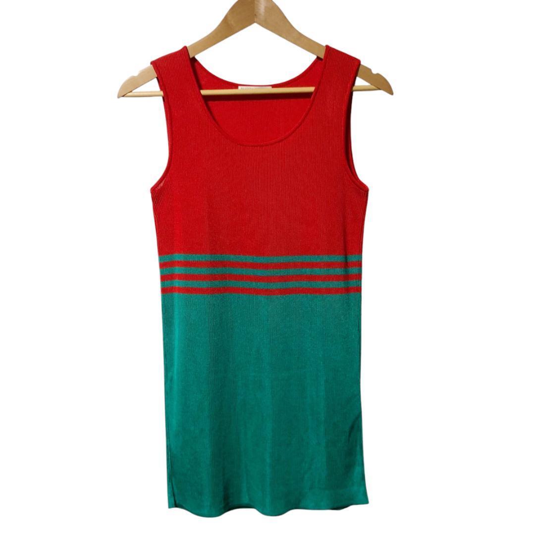 - PLEATS PLEASE プリーツプリーズ ワンピース チュニック ノースリーブ ボーダー バイカラー 3 レッド エメラルドグリーン レディース M12