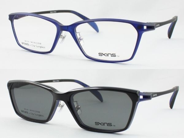 > SKINS スキンズ メガネフレーム SK-141-2 マグネットクリップ偏光サングラス 度付きレンズ可 近視 遠視 乱視 老眼鏡 遠近両用 伊達メガネ