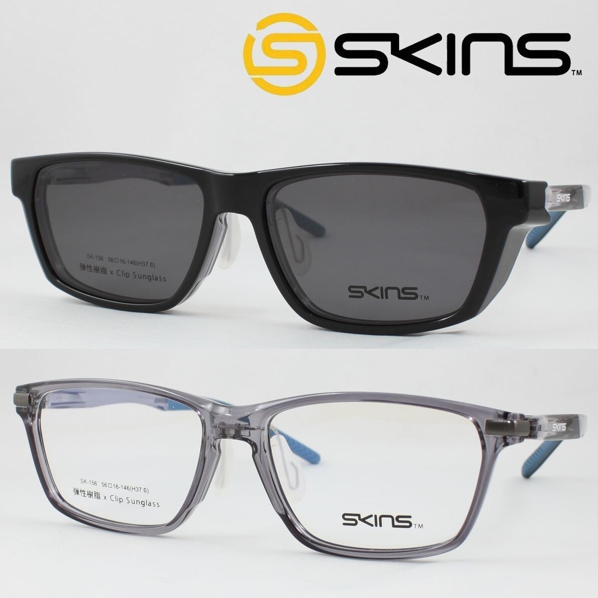 > SKINS スキンズ メガネフレーム SK-156-2 脱着式 マグネットクリップ偏光サングラス 度付き対応 近視 老眼鏡 遠近両用 スポーツ軽量 フード