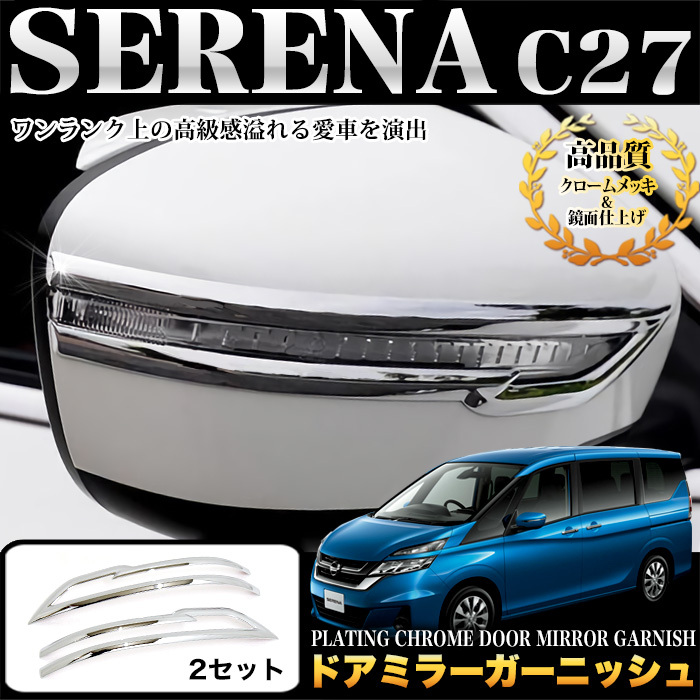 > セレナ C27 全グレード対応 ドア ミラーガーニッシュ メッキ パーツ 鏡面 クローム FJ4710