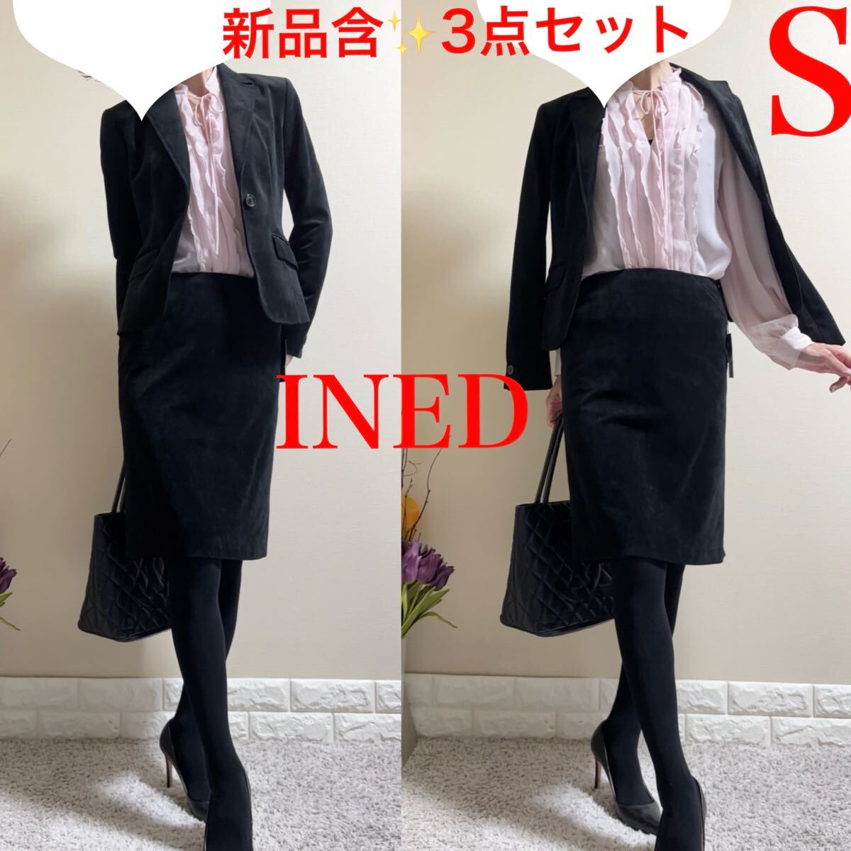 - 新品含!3点セット!イネド INED ベロア フォーマル セットアップ スーツ 7 S 黒 スタイル美人スーツ 七五三 入学式 卒業式 結婚式