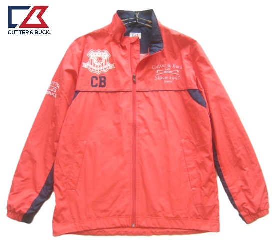 > 美品!!カッター&バック CUTTER&BUCK*ロゴ刺繍・プリント メッシュ裏地 立ち襟ナイロンZIPジャケット M ゴルフ GOLF デサント
