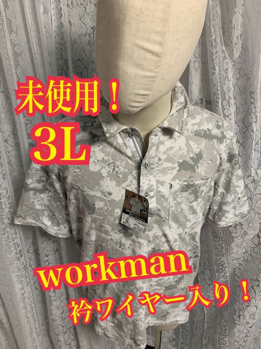 - 未使用!workman ワークマン 半袖 ポロシャツ 衿ワイヤー入り 迷彩 カモグレー 3L