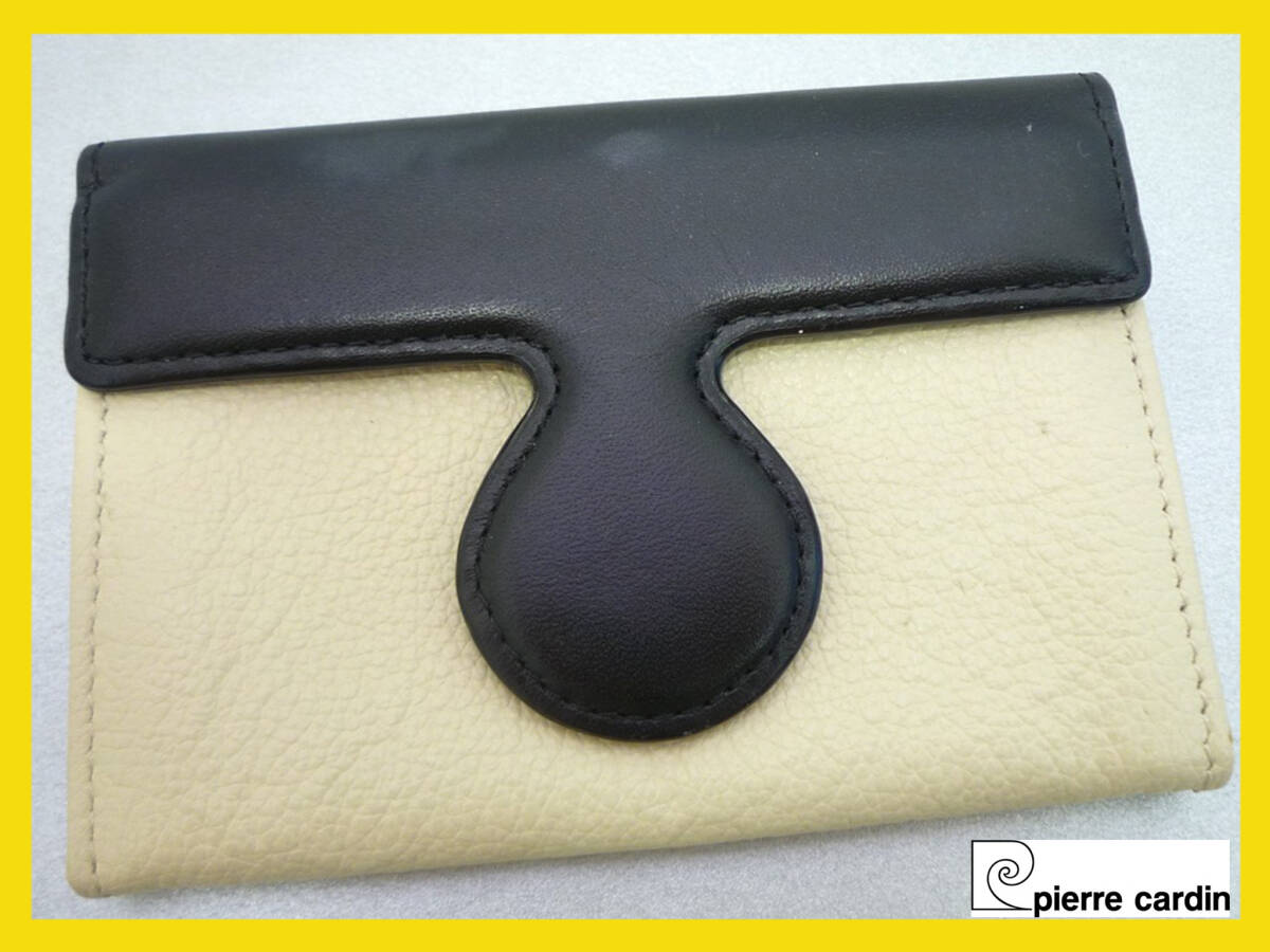 > Pierre Cardin ピエール カルダン パズル カードケース 名刺入れ レザー 牛革 アイボリー お買得 必見 レア 希少 コントラスト モダン 注目