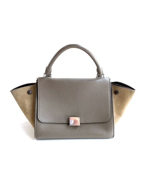 > 【即決】 CELINE セリーヌ トラぺーズ スモール 169543 カーフ スエード グレー ブラウン ハンドバッグ ストラップ欠品