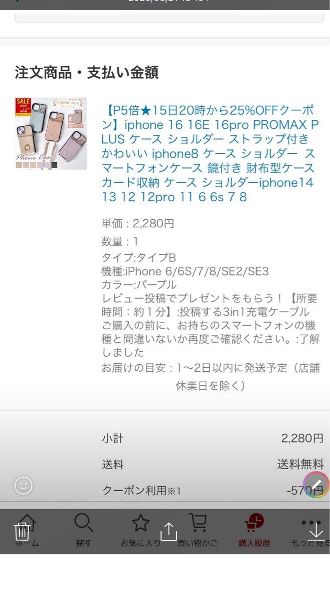 - iPhoneケース ショルダー鏡付き財布型ケース パープル