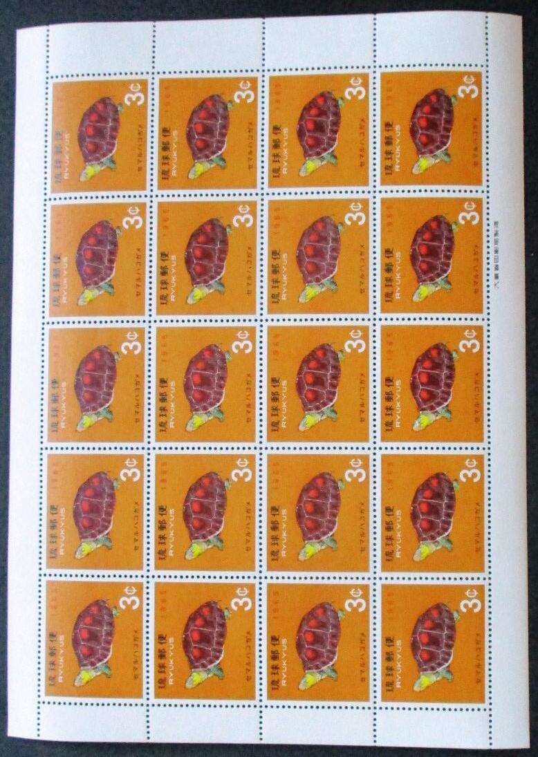 - 沖縄切手・琉球切手 カメシリーズ セマルハコガメ 3¢切手 20面シート 139 ほぼ美品です。