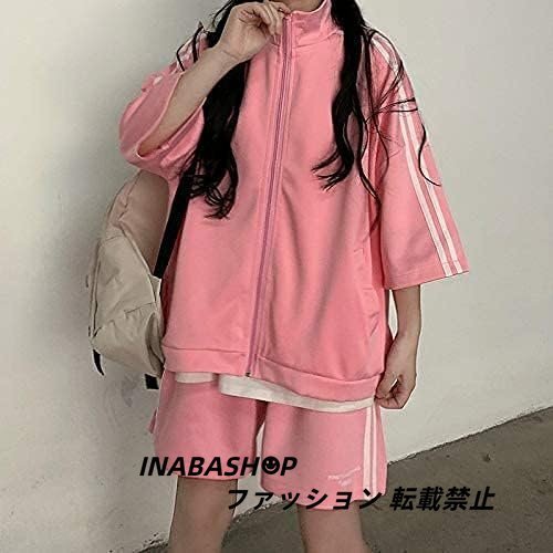 - 春夏 半袖 2点セット ジャージ レディース ショートパンツ 上下セット 五分袖 スウェット ゆったり スエット カジュアル スポーツ 部屋着