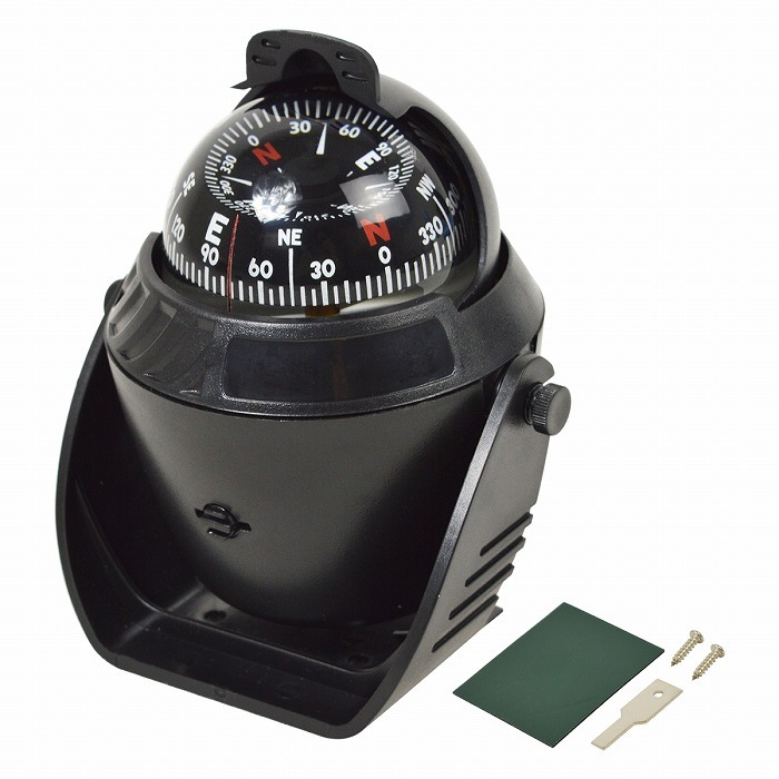 - LEDライト 照明付き マリンコンパス 船舶 船 漁船 車 ボート ヨット 12V ブラック 黒 方位磁石 角度調整 コンパス