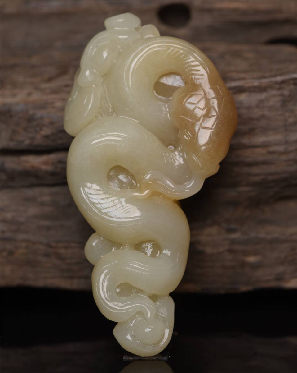 - 『館蔵珍品 和田玉製 細密彫 玉蛇 置物 賞物』稀少珍蔵品 古賞物 貴重物品 収蔵品 中国古美術 時代物 古董品