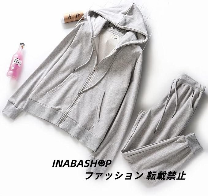 - 韓国風 ジャージ 上下セット レディース スウェット 2点セットアップ ジップパーカー 無地 アクティブウェア 部屋着 ゆったり 大きいサイズ