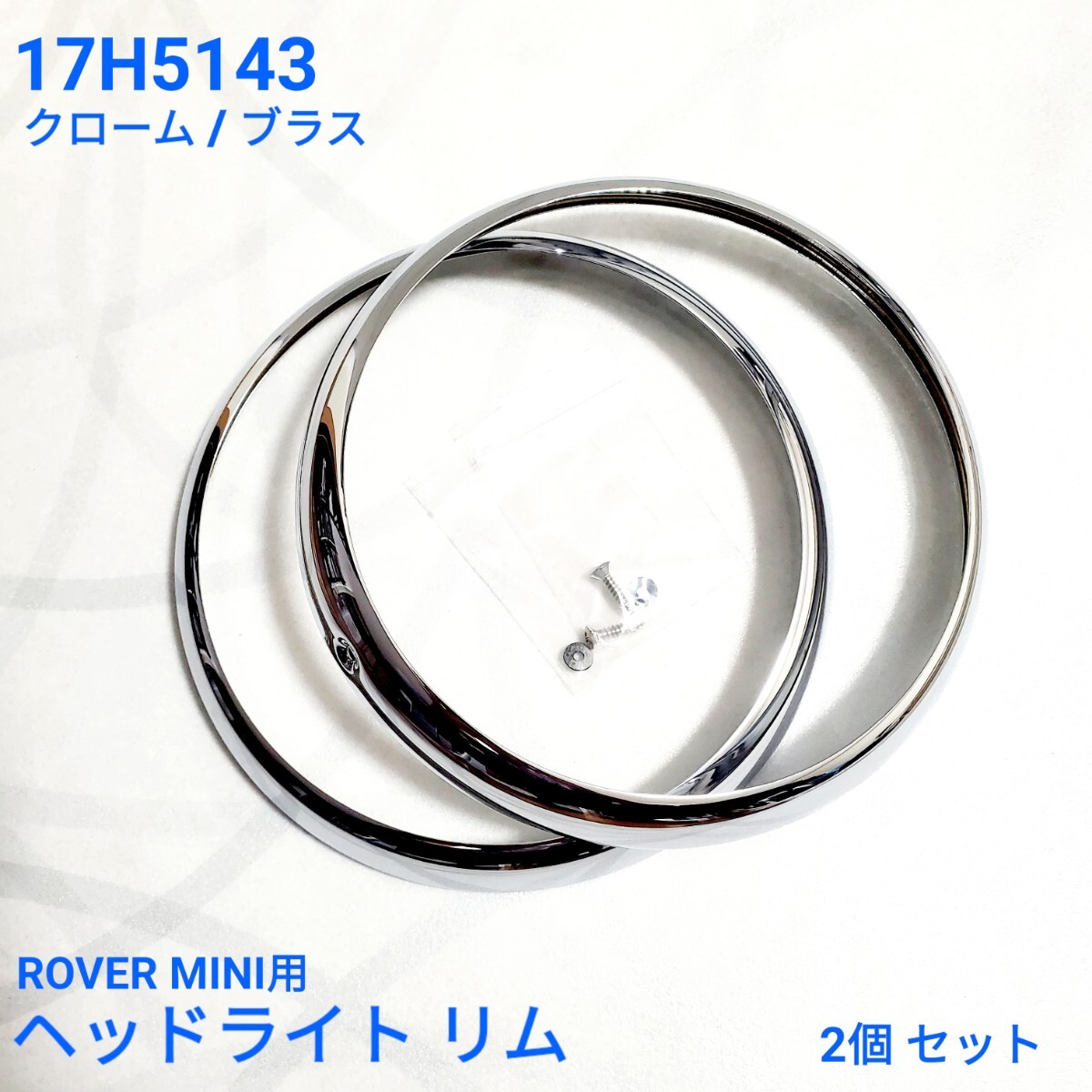 > ローバーミニ クラシックミニ ヘッドライト リム / リング 2個 セット / 一台分 クローム / ブラス 17H5143 取り付けビス付き 新品