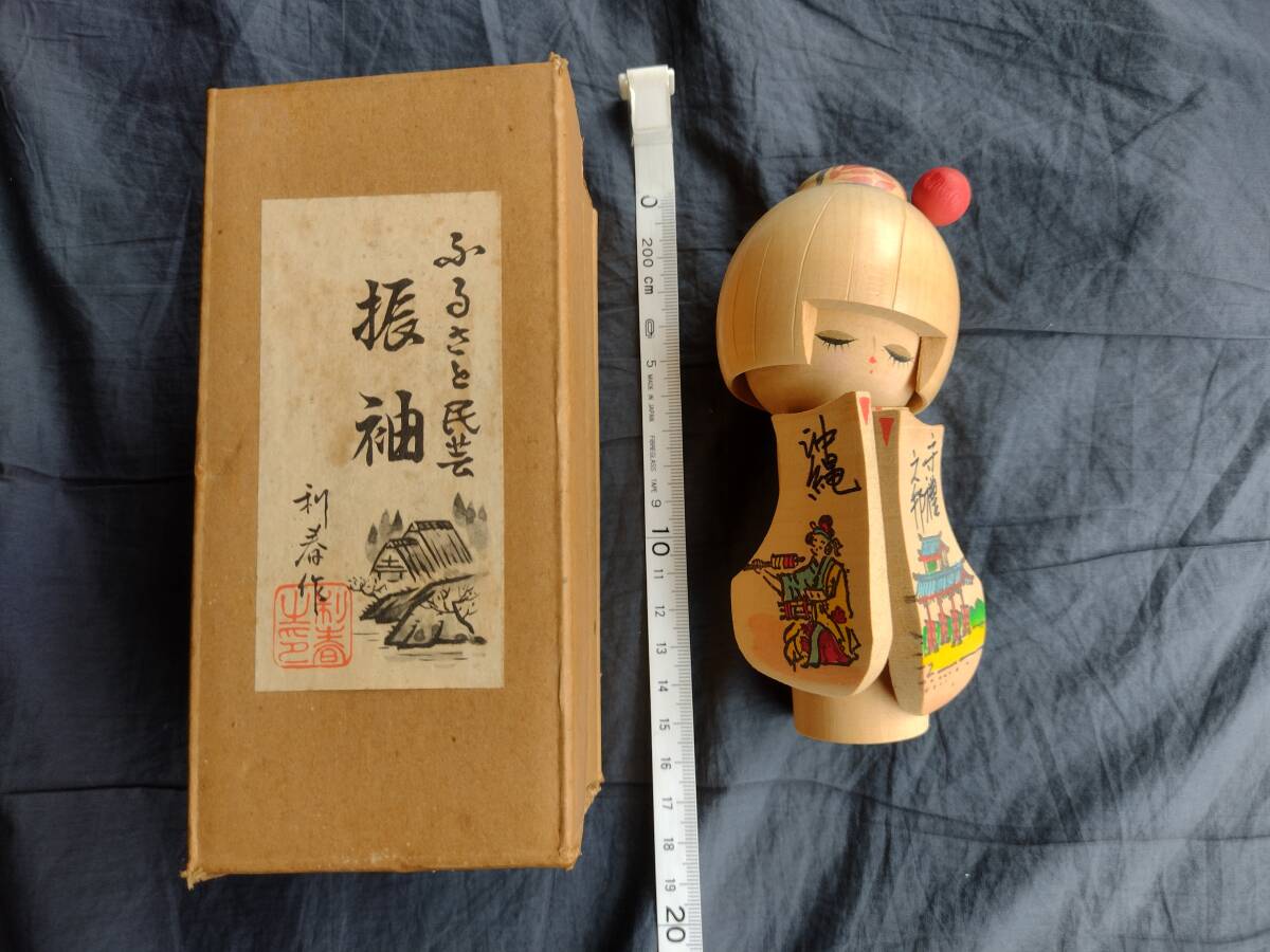 > 15cm 140g こけし 置物 民芸品 創作こけし 和風 伝統工芸 郷土玩具 レトロ 日本人形 ドール 木工細工 高橋利春 振袖 即決