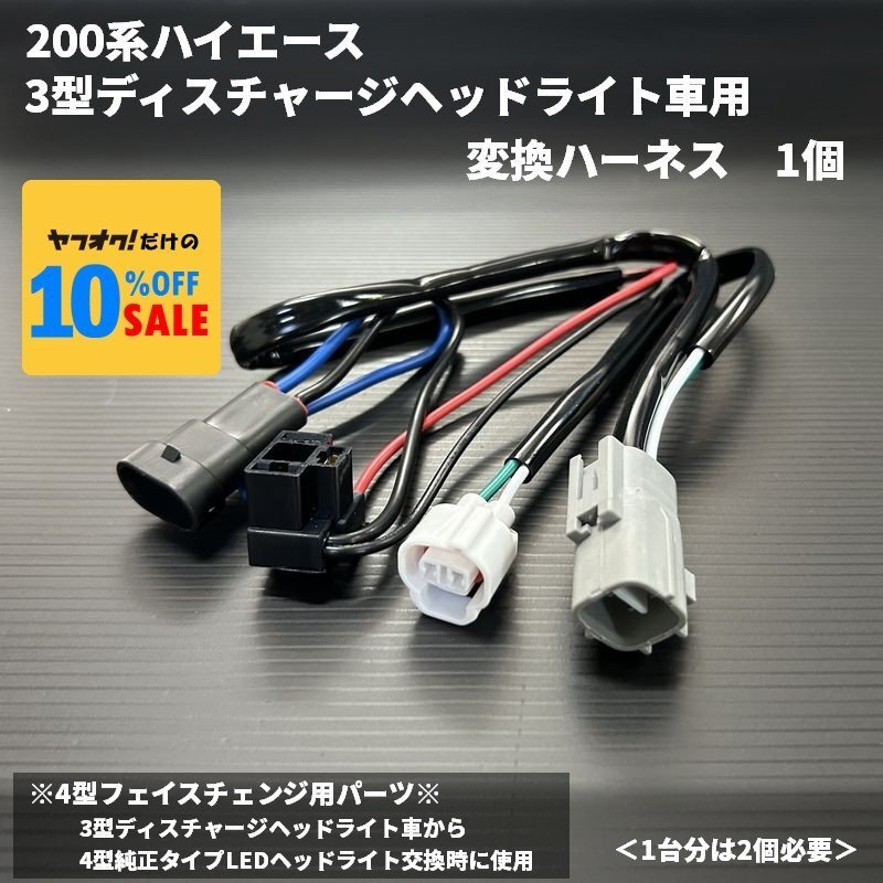 > 200系ハイエース 4型フェイスチェンジ 3型ディスチャージヘッドライト車用 変換ハーネス 1個