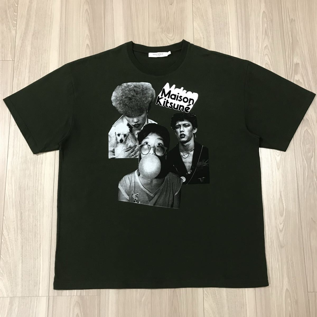 > XL MAISON KITSUNE OLY GREEN BIG PUNK ROCK TEE メゾン キツネ コラージュ ルーズ フロッキー プリント ロゴ グリーン バンド Tシャツ
