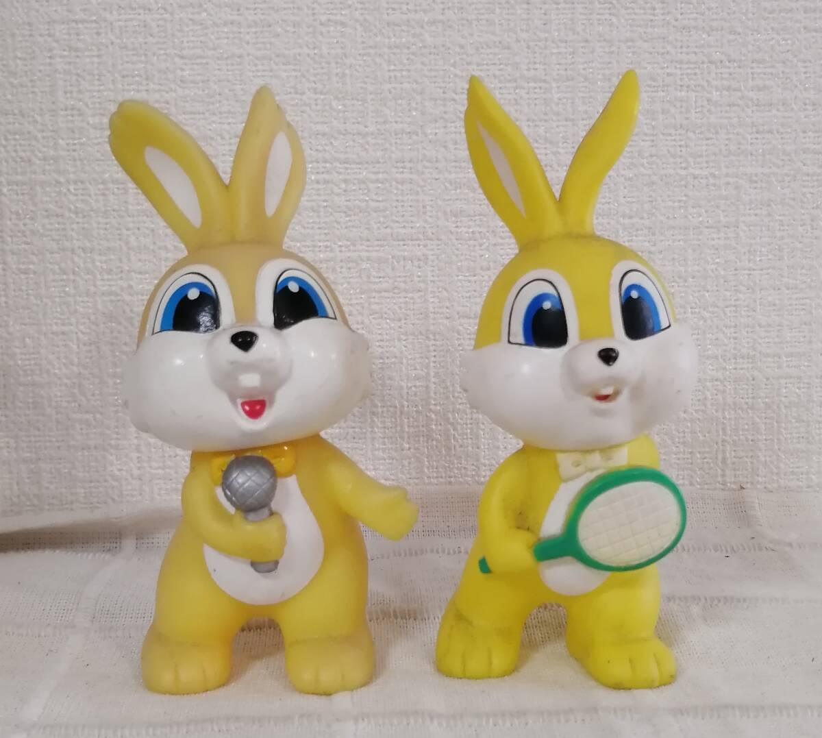 - ◯雑貨 エスエス製薬 ピョンちゃん ソフビ イエロー2個セット マイク&テニスラケット 非売品